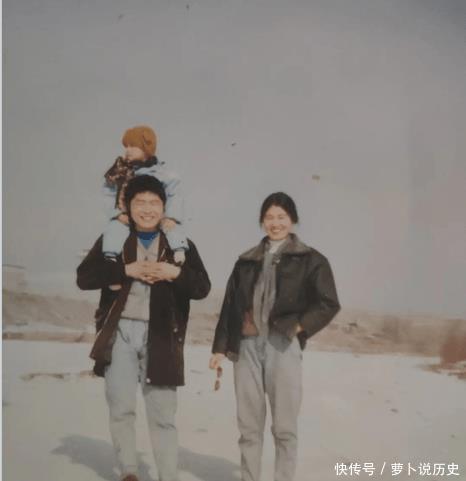 一家三口在雪地里拍的合照。父母笑容可掬,洋溢着幸福。